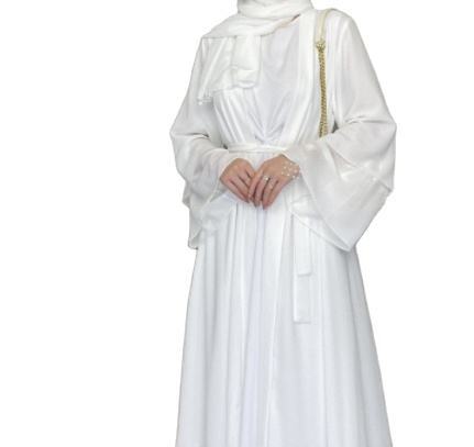 Vestido largo musulmán Abaya islámico Vestidos modestos Ropa de satén Abaya musulmana con cinturón ajustable y conjunto de capa de gasa