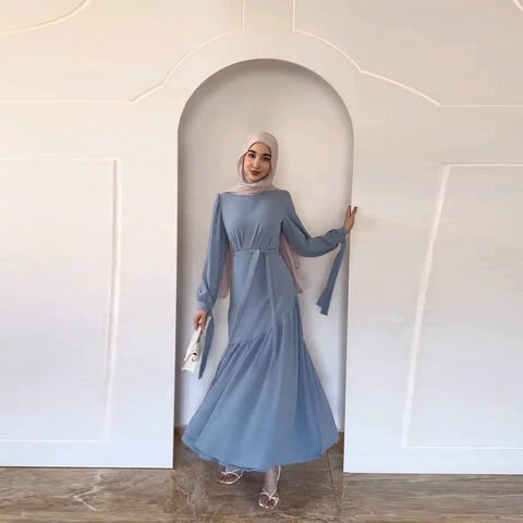 Vestido musulmán para mujer, ropa islámica al por mayor, vestidos abaya modestos de Color sólido para mujer, vestido musulmán listo en stock